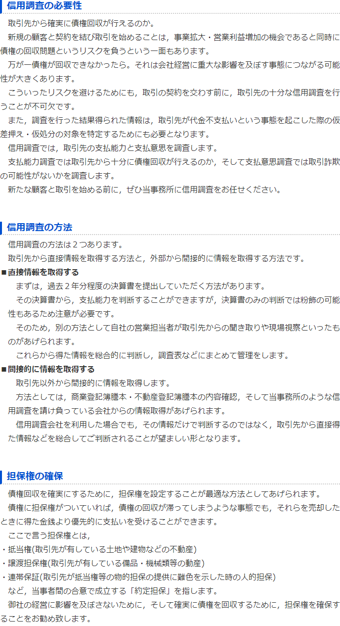 大変申し訳ございませんが、担当弁護士の予定が一杯のため、現在、債権回収についてのご相談はお受けすることができません。